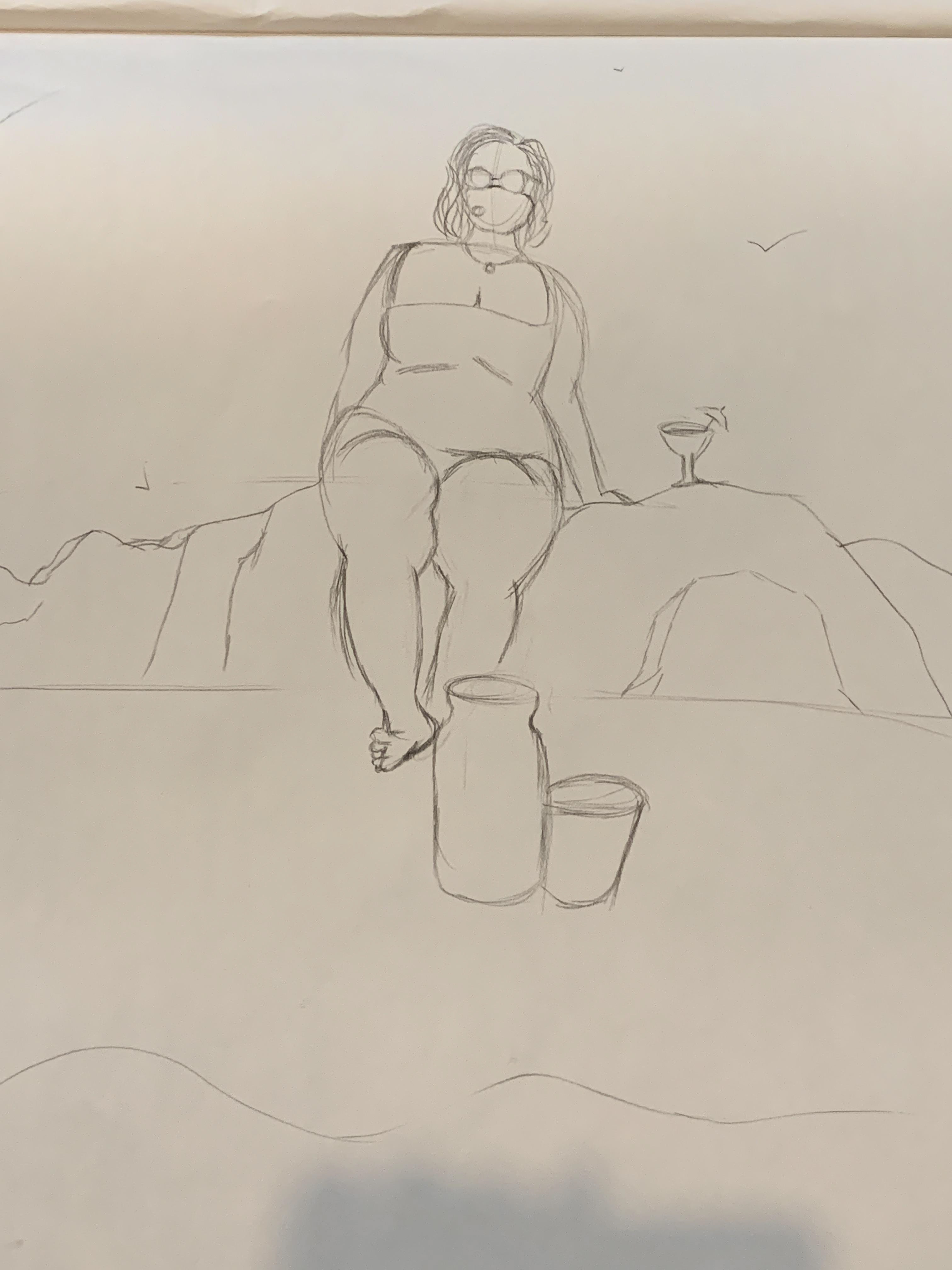 Beach Day is another exercise for Drawing lab. We had to create an environment that enhances the model costume. - Nachos - Beach Please - Tiki - Counting the sand Charcoal over newsprint paper