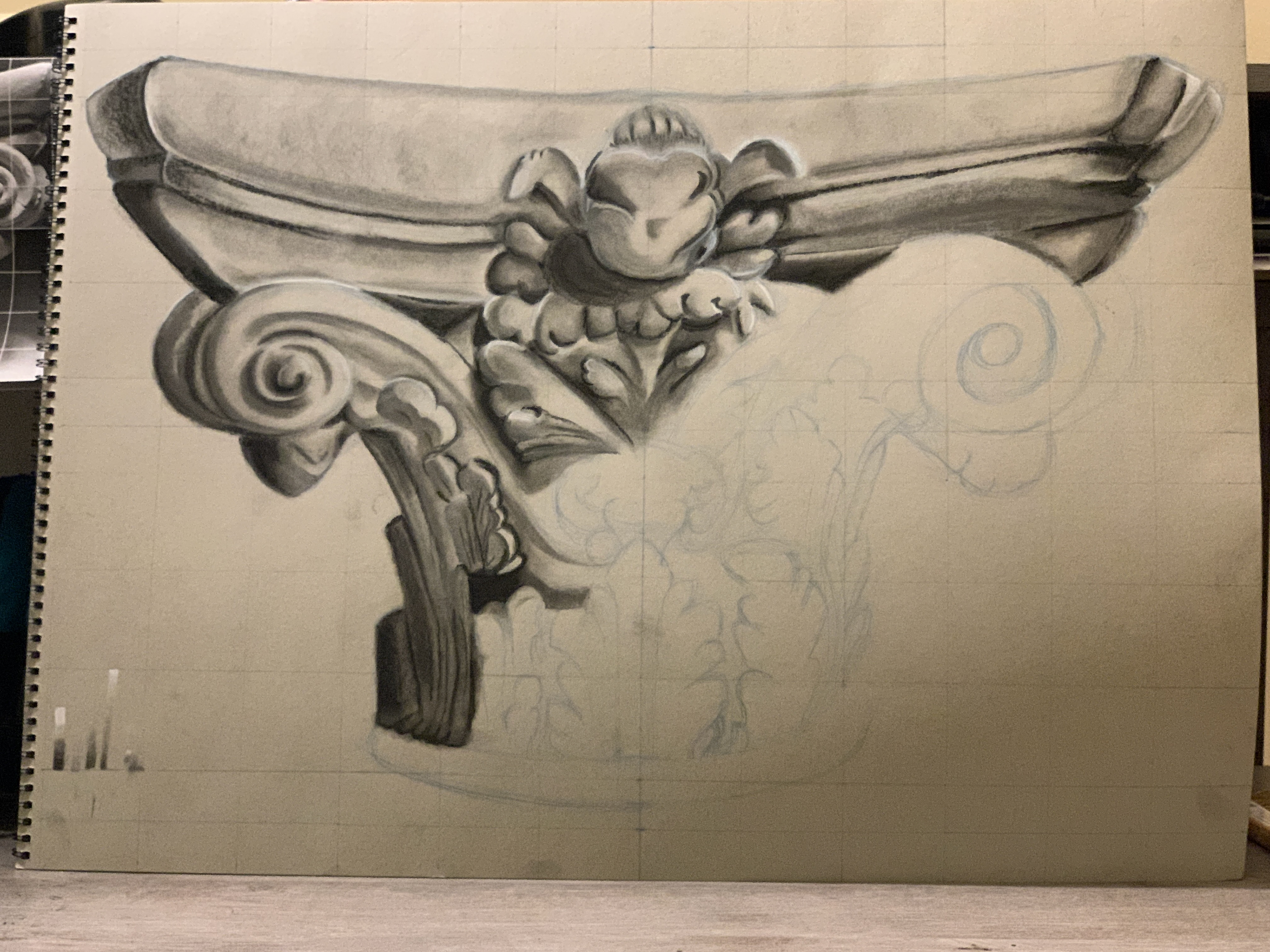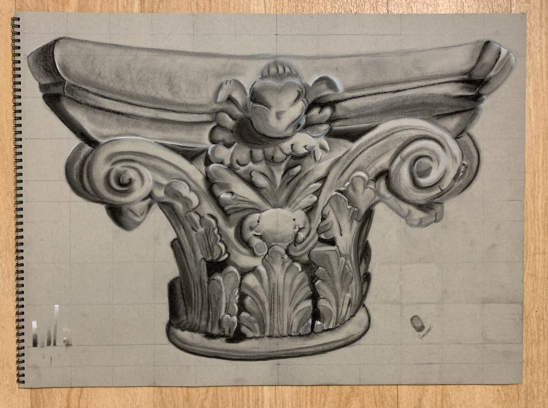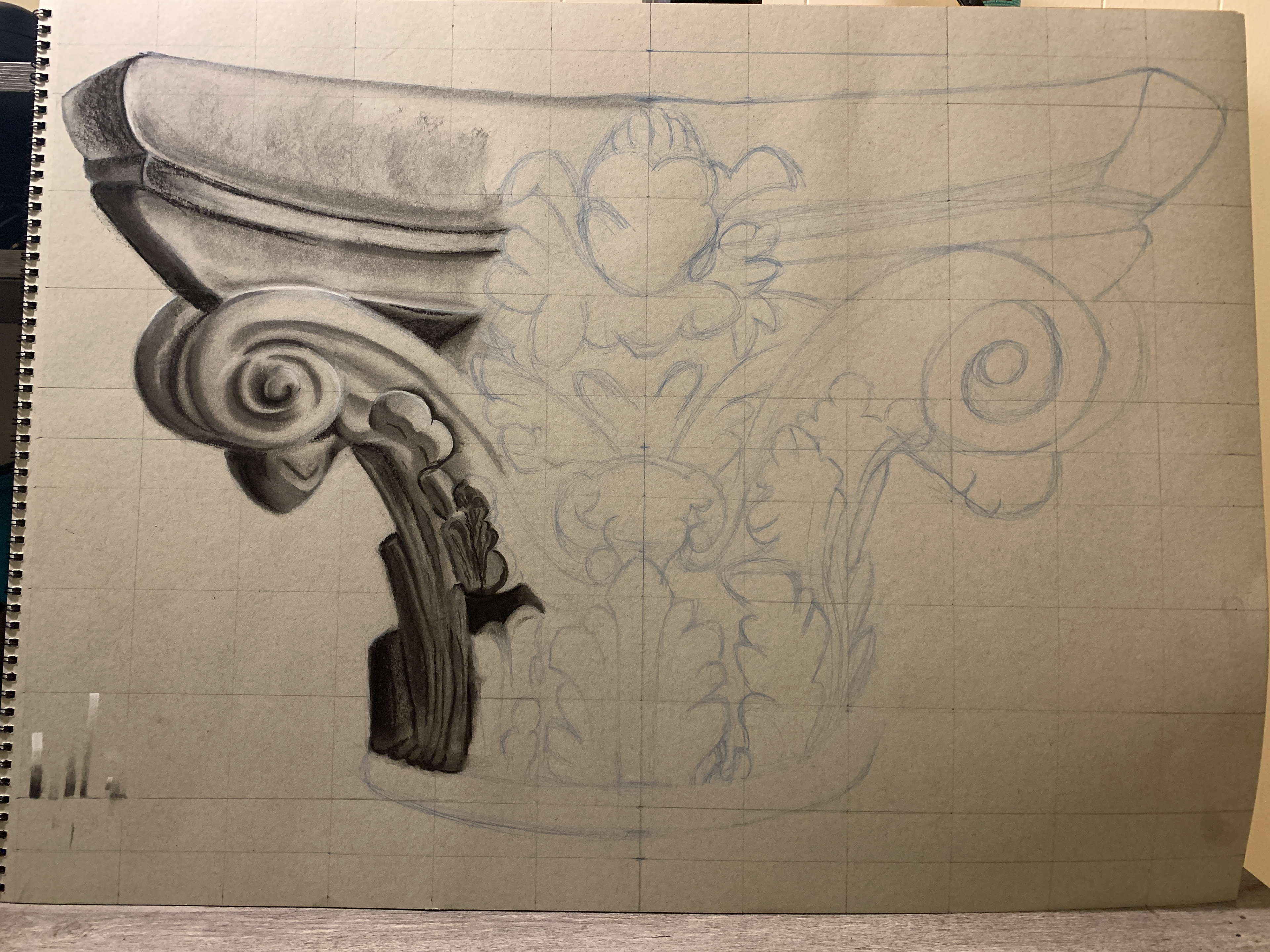 Exercise for Scenic Painting & Environmental Rendering class. Charcoal over toned gray paper