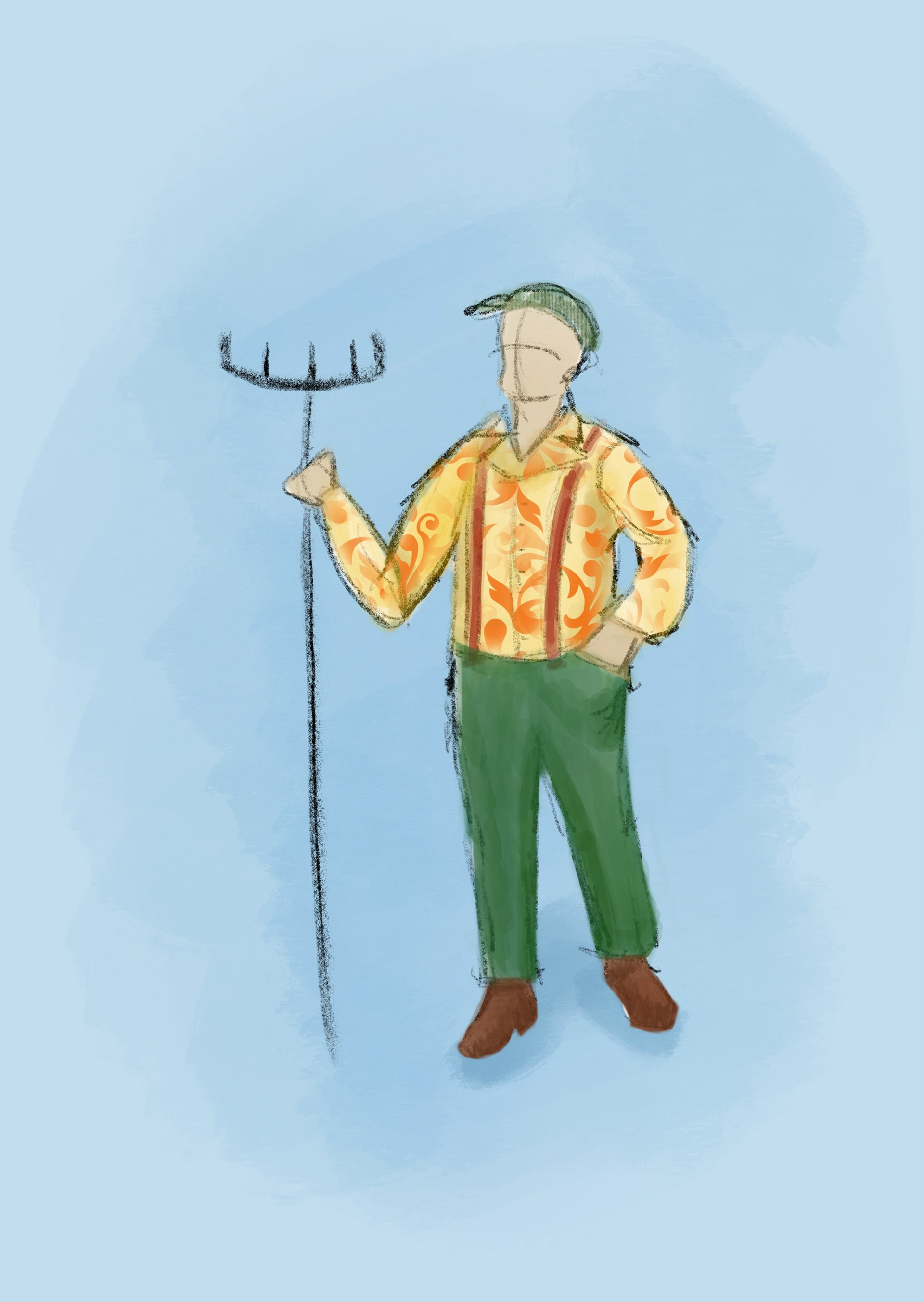 Costume Design process for Edward, a character from Cloud 9 by Caryl Churchill. Exercise for Studio class. Model: Rodrigo Esquivel